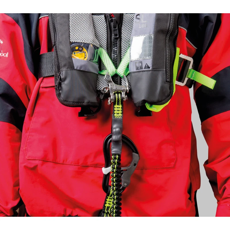 Produit nautique haut de gamme, la longe WICHARD Proline’R à 2 mousquetons est équipé d’un mousqueton largable coté harnais, indispensable pour la sécurité des personnes en bateau !